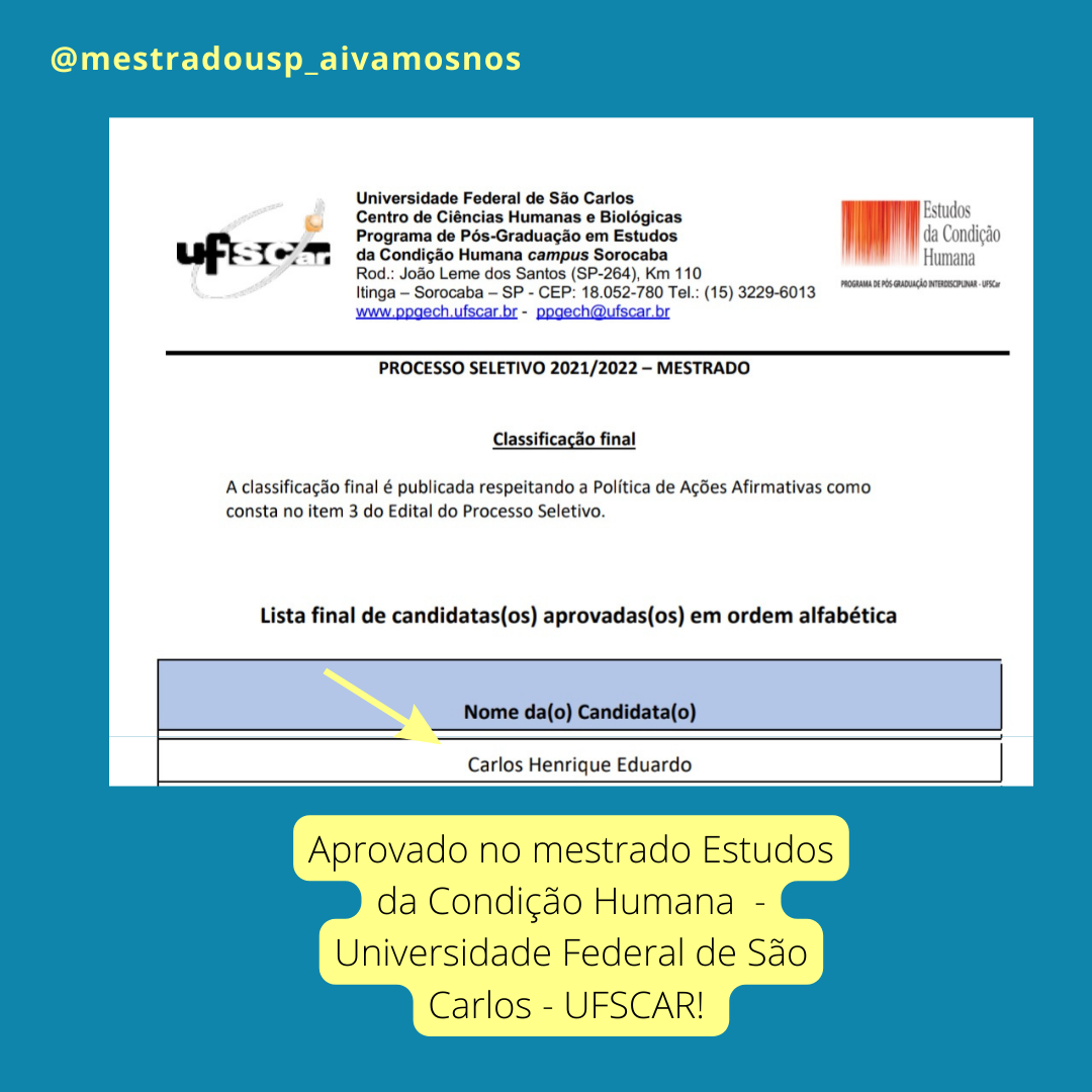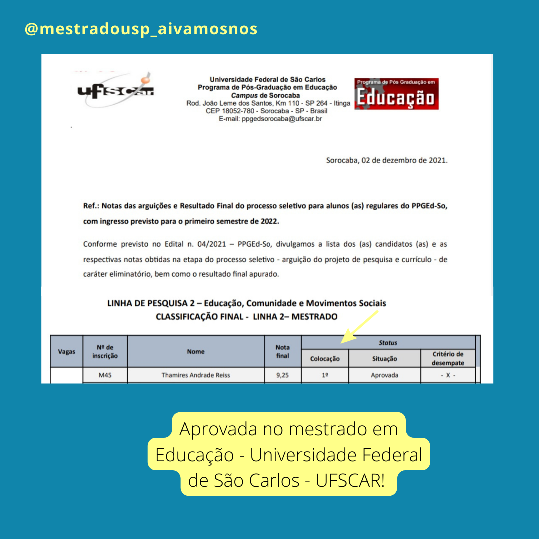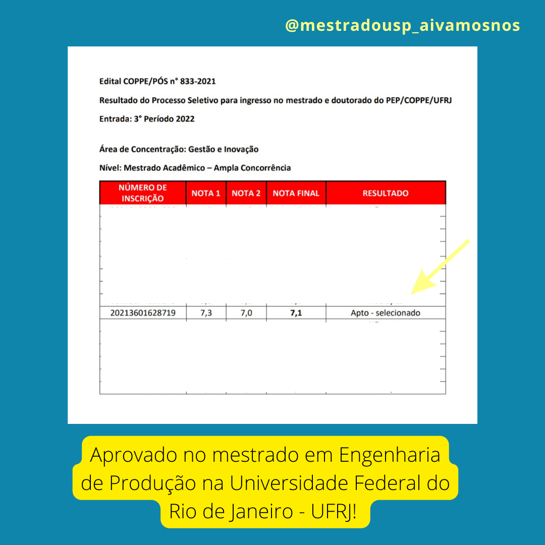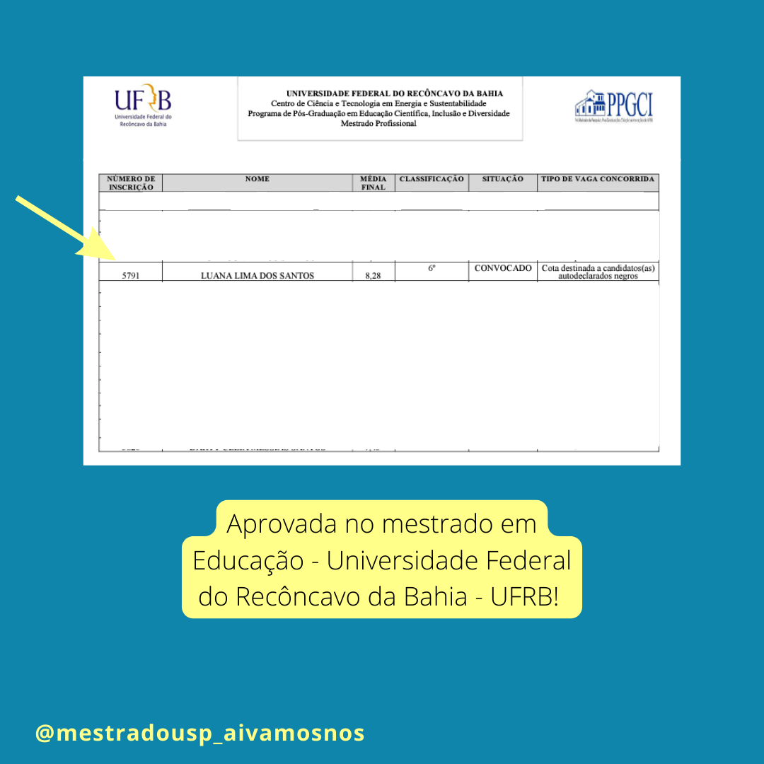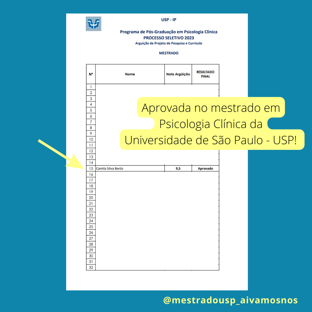 Confira algumas aprovações decorrentes da minha consultoria acadêmica: