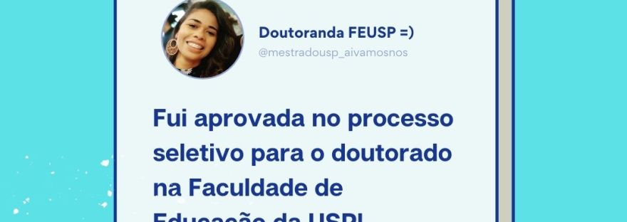 Gente, eu passei no doutorado da Faculdade de Educação da Usp!!! Este processo seletivo foi o mais concorrido da história da FEUSP! Segundo dados da comissão de pós-graduação, foram 2.583 inscrições homologadas para 154 vagas de Mestrado e 141 de Doutorado, distribuídas nas linhas de pesquisa de cada área de concentração. Para o doutorado, apenas 216 projetos foram… Continuar lendo Passei no doutorado da FEUSP!